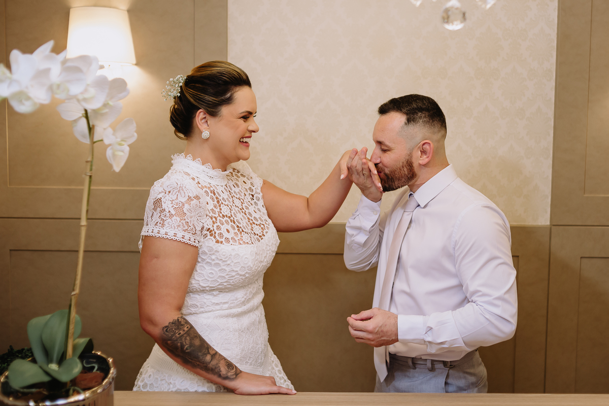 O casamento civil da Fran e do Franklin foi completo em cada detalhe, desde o vestido branco, o terno e o buquê de flores. A noiva teve um lindo making of na @karolalexandremakeup, cerimônia civil no cartório, seguida por fotos após a cerimônia e uma calorosa recepção aos convidados.