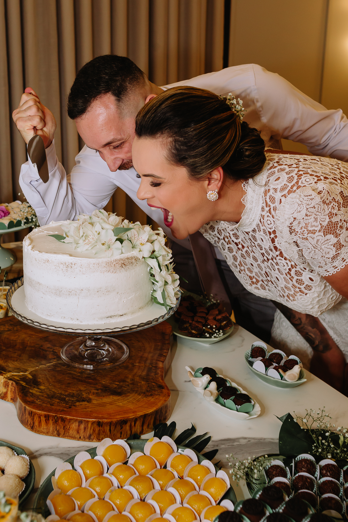 A celebração foi íntima, reunindo familiares e amigos queridos, repleta de sorrisos e abraços.