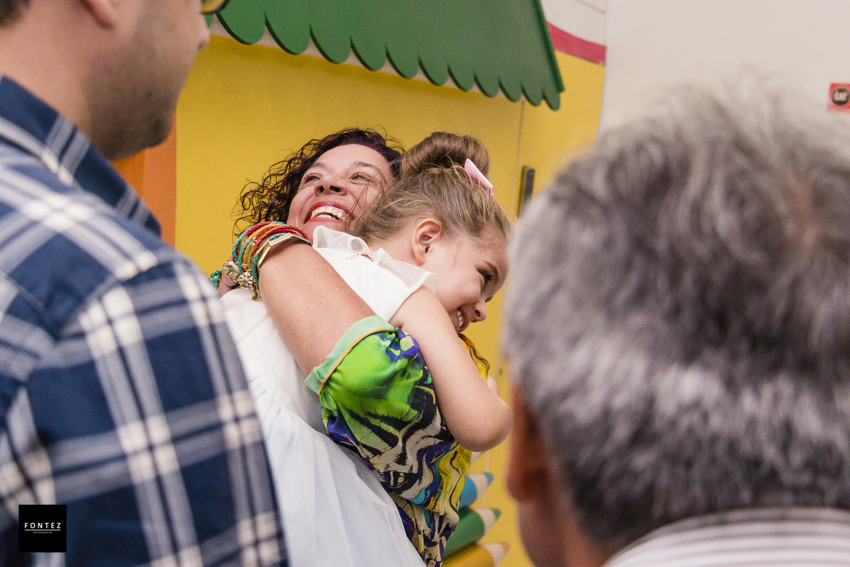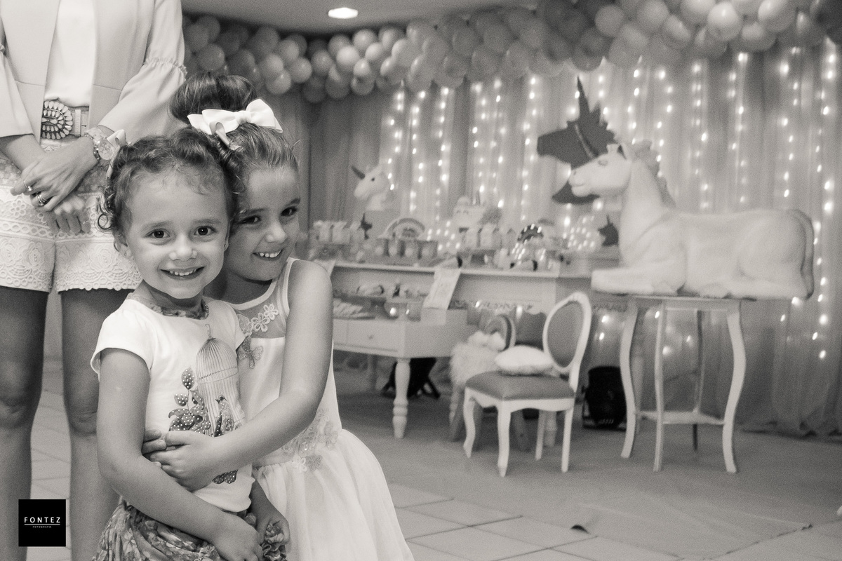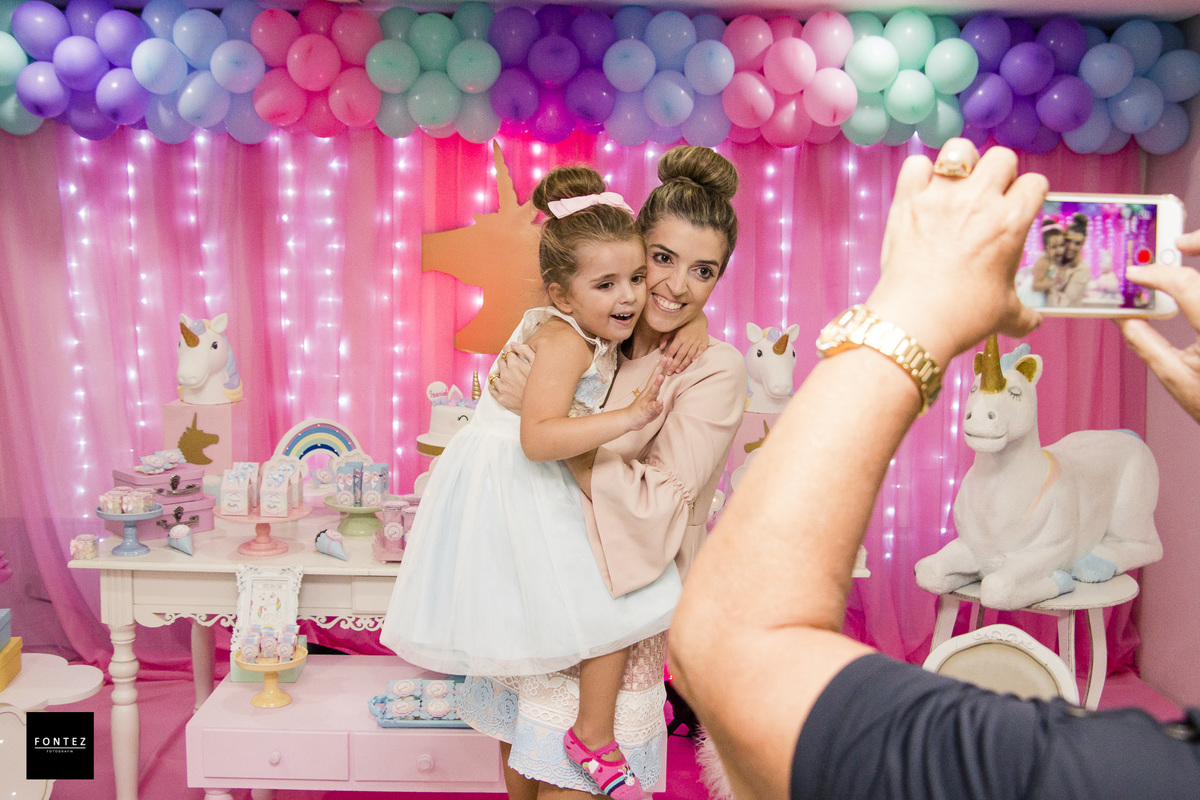A festa era de unicórnio, mas a Mariah recepcionou todos os convidados com um abraço de urso! Que menina gentil e sorridente ;D